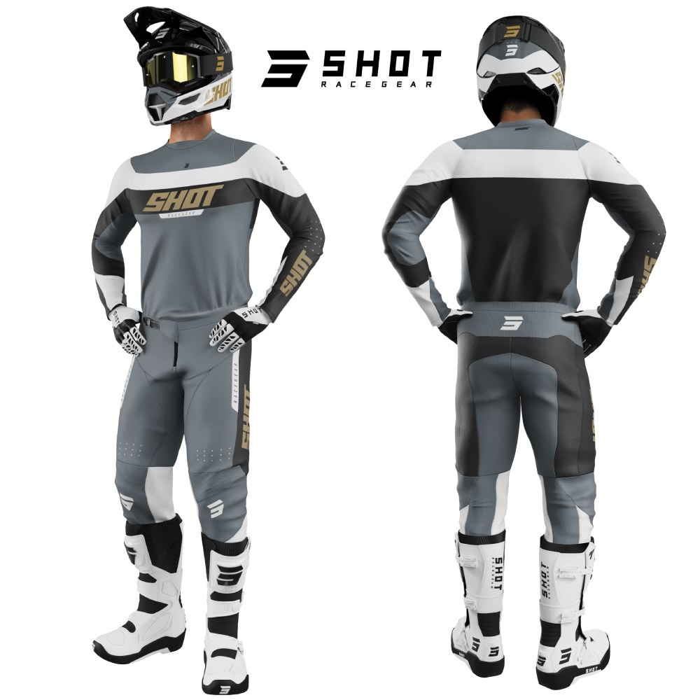 חליפת שטח SHOT Devo League Gold אפור/לבן/שחור/זהב מידות 30-38