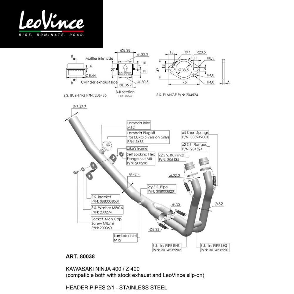 סעפת LeoVince KAWASAKI Ninja400/Z400/Ninja500/Z500 18-25
