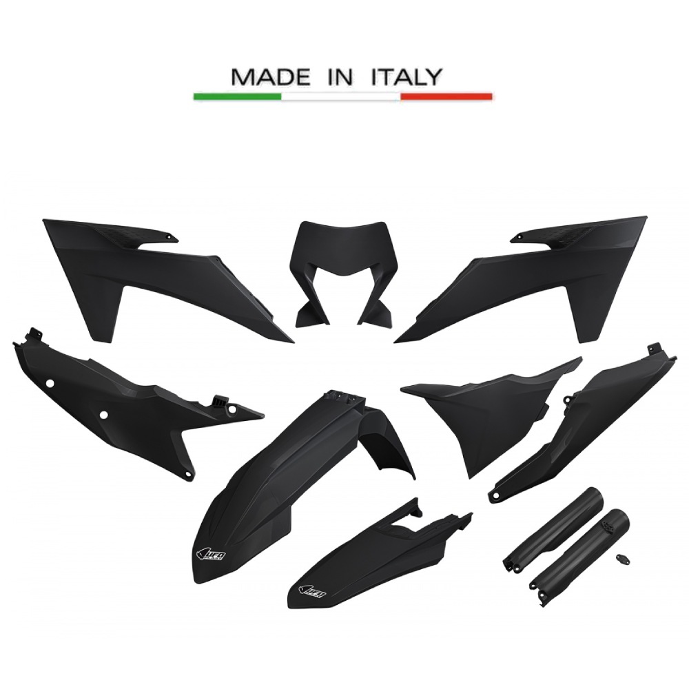 סט פלסטיקה כולל מגיני בולמים UFO KTM EXC/EXC-F 24-25 שחור