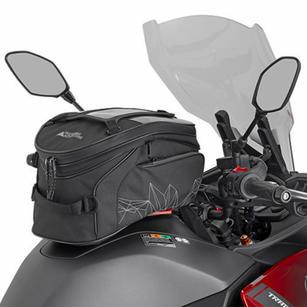 תיק מיכל , ללא מגנטים, מתחבר לאופנוע באמצעות מתאם המתחבר על פקק מיכל הדלק. פשוט וקל מאוד לתפעול